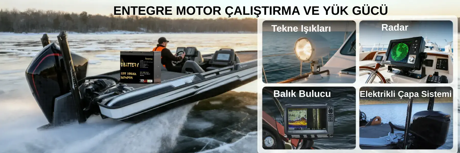 - Trolling Motor: Balıkçı tekneleri ve sonar sistemleri için parazitsiz güç.