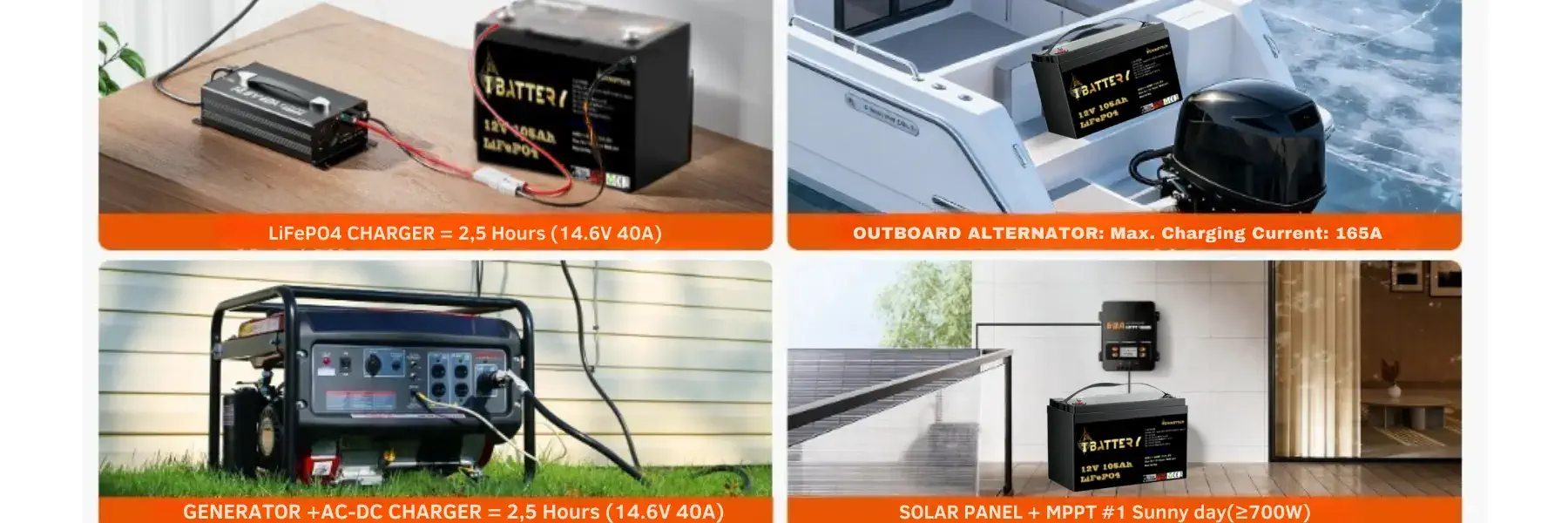 LiFePO4 akü şarj cihazı, dıştan takma alternatör, jeneratör veya güneş paneli kullansanız da akünüzü verimli ve güvenilir bir şekilde tam olarak şarj edebilirsiniz.